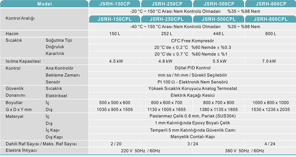Kapasite: 150 / 250 / 500 / 800 Litre